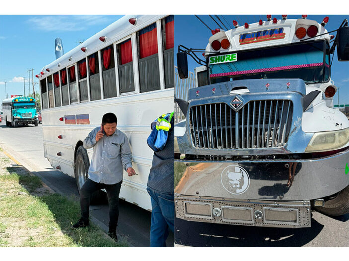 Un chofer de transporte de personal embistió a una conductora en el bulevar Manuel Talamás Camandari, pagó una multa de 340 pesos y siguió su camino, aunque el vehículo circulaba sin placas y sin cumplir con el año modelo, señaló la afectada en sus redes sociales.