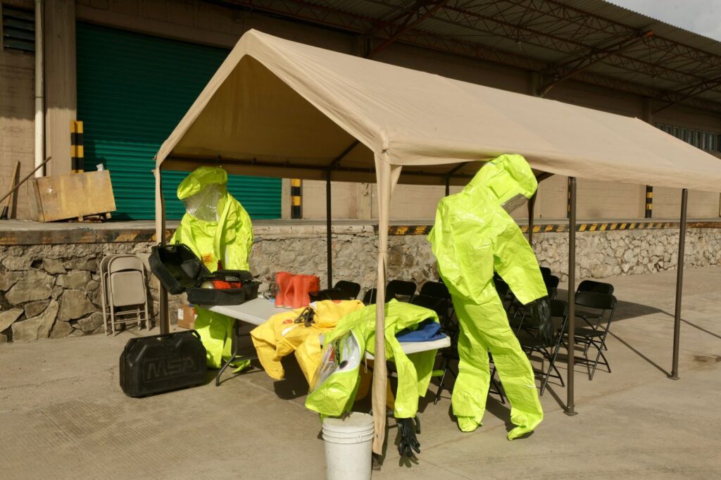 La jornada también incluyó prácticas sobre el uso de equipo de protección personal Nivel A y la aplicación de kits de respuesta a emergencias químicas, herramientas esenciales para mitigar riesgos en incidentes con sustancias peligrosas.