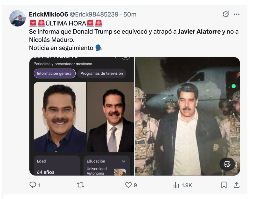 La captura de Nicolás Maduro por parte de Estados Unidos provocó una reacción inesperada en México: el periodista Javier Alatorre se convirtió en trending topic nacional en redes sociales.
