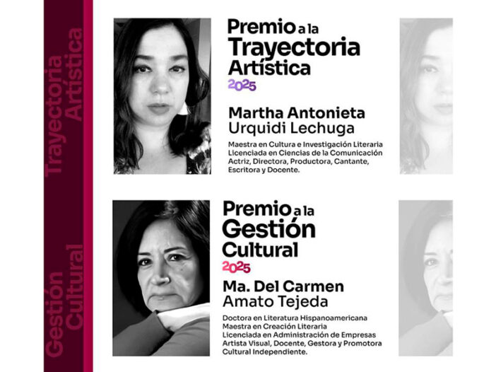 Carmen Amato Tejeda fue galardonada con el Premio a la Gestión Cultural 2025, mientras que Martha Antonieta Urquidi Lechuga recibió el Premio a la Trayectoria Artística 2025, en reconocimiento a su aportación sostenida y al impacto de su trabajo en la comunidad.