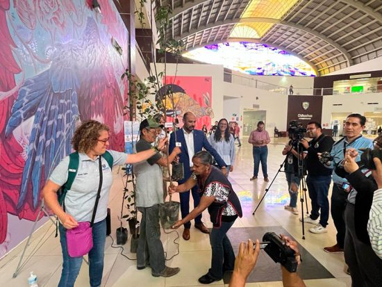 Desde temprano, funcionarios de SDUE comenzaron a repartir árboles en las oficinas de Pueblito Mexicano a las personas que los solicitan
