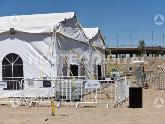 La carpa cuenta con clima, sanitarios, extintores, alumbrado, entre otros servicios