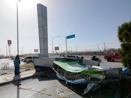 Camión de carga destroza paradero del BRT en la 16 de Septiembre