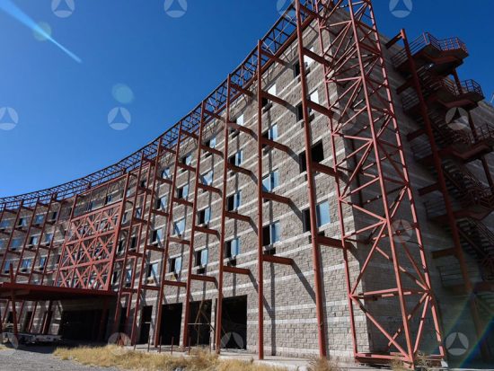 El elefante blanco del cruce de Rubén Posada Pompa y avenida Plutarco Elías Calles, está en un terreno de 13 mil 500 metros cuadrados; tiene cinco pisos y 128 habitaciones