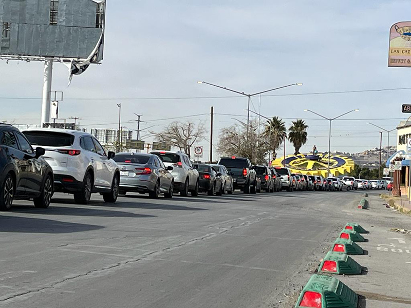 Las filas del puente Libre llegaban esta tarde hasta las oficinas estatales de Pueblito Mexicano