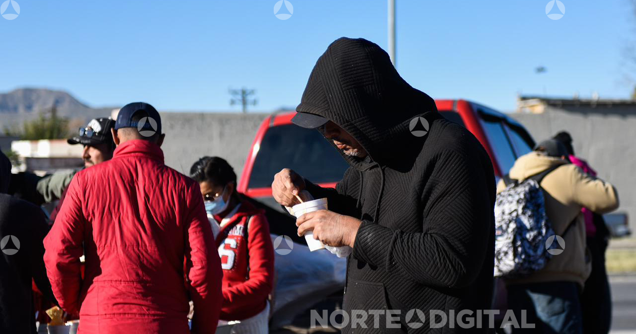 Entregan paquetes de prendas contra el frío y alimentos calientes