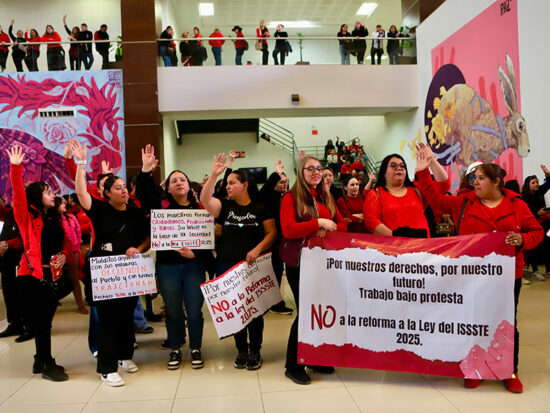 Cientos de profesores llegaron en caravana para manifestar su rechazo a la reforma del Issste en las oficinas administrativas de Gobierno del Estado