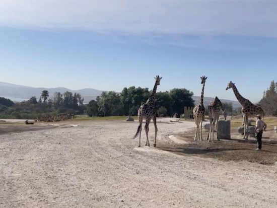 Fue recibido por varias jirafas y desayunaron juntos y tranquilos
