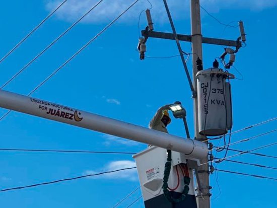 El operativo comenzó este lunes a cargo de la Dirección de Alumbrado Público en el poblado ubicado en el Valle de Juárez