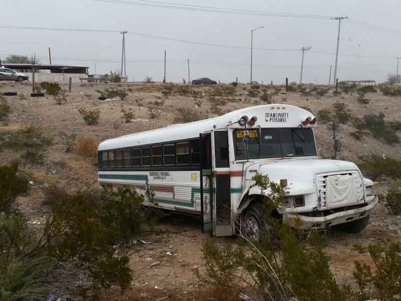 Autobús de personal se salió esto mañana de la carretera cerca del entronque se Santa Teresa