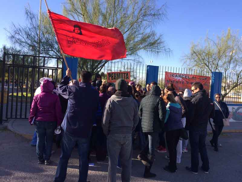 Un grupo de alrededor de 300 maestros distribuidos en distintos frentes en Ciudad Juárez, se manifiestan contra la evaluación que la Secretaria de Educación, Cultura y Deporte realizó en el estado durante la mañana de este sábado