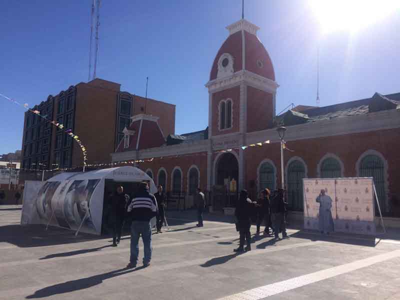 La imagen del papa Francisco y el libro para que los juarenses le envíen un mensaje fue colocado frente al Museo de la Revolución en la Frontera (Muref).
