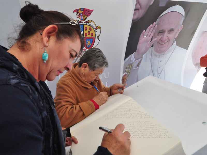 Acuden fieles a plasmar mensajes en el libro que entregarán al Papa