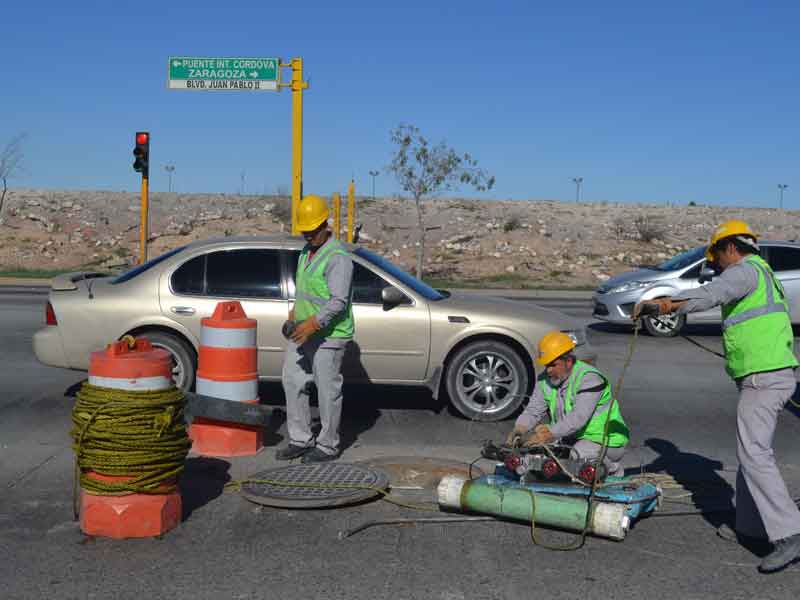 Personal de la Junta Municipal de Agua y Saneamiento utilizó ayer un robot para revisar el estado del colector ubicado sobre el bulevar Juan Pablo II