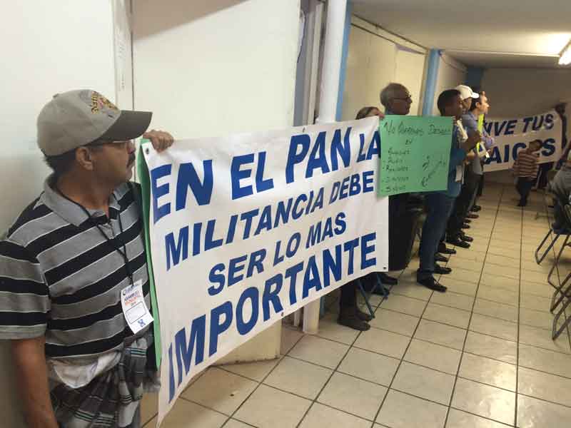 Sacan pancartas en asamblea local y mandan mensaje a Mario Vázquez para que no se manipule elección de candidatos