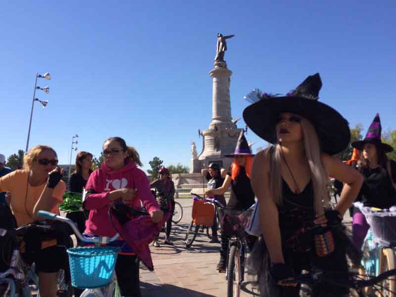 Con el fin de promover el ciclismo en las ciudad, más de 50 brujas tomaron las avenidas 16 de Septiembre y Vicente Guerrero esta mañana para dar un recorrido del Parque Borunda al Monumento a Benito Juárez