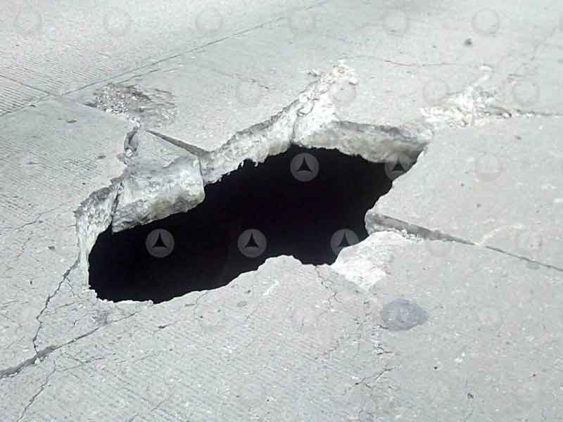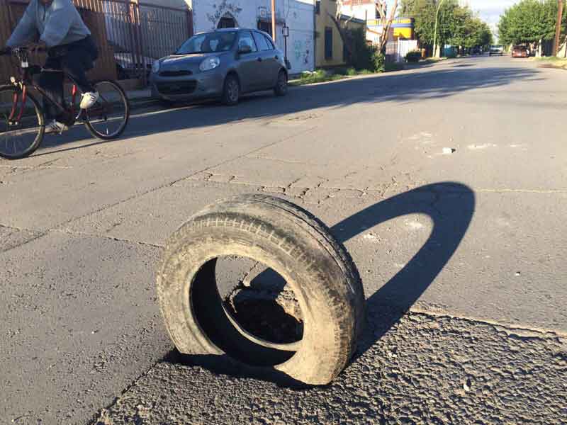 Un neumático previene a los guiadores sobre un hundimiento sobre la calle Ignacio de la Peña y Ecuador.