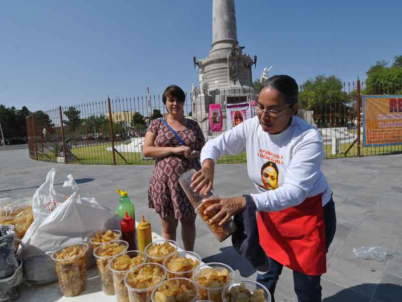 Familiares de desaparecidas ‘toman’ el monumento a Juárez para recabar fondos con la venta de alimentos