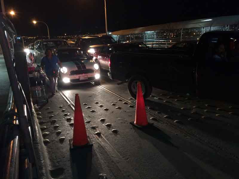 Una vendedora ambulante coloca 2 conos como señalamientos preventivos para ofrecer sus productos