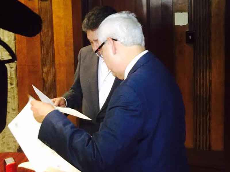 Acudió personalmente a la oficina particular del alcalde Enrique Serrano, donde coincidentemente se encontraba el secretario del Ayuntamiento Jorge Quintana, quien recibió el escrito