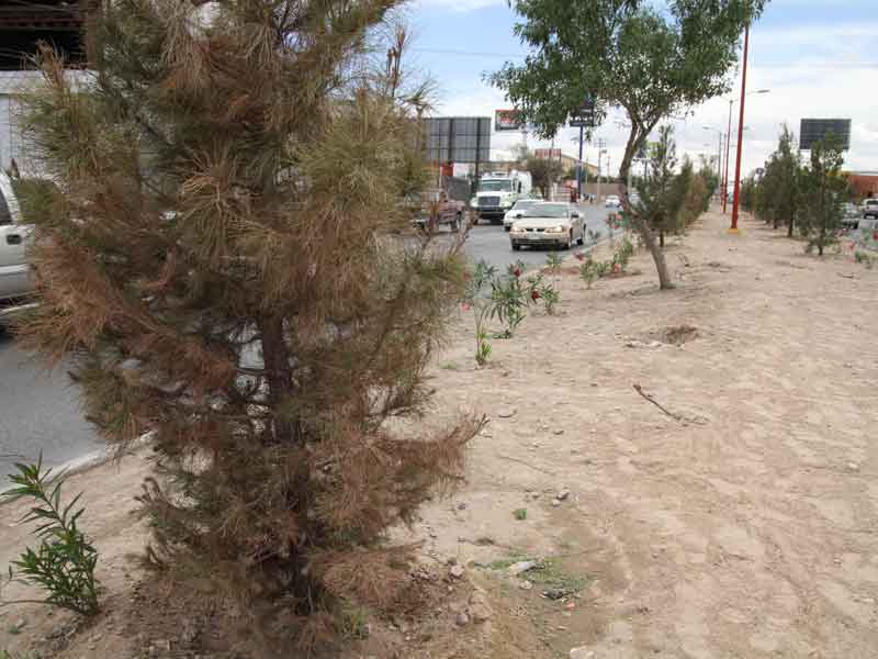 Falta de agua y fallas en el proceso de trasplantado por parte de los constructores causaron que murieran pinos del bulevar Zaragoza