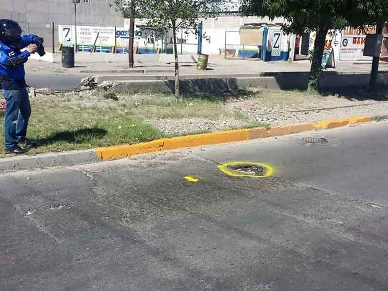 Grupo de motociclistas señala con pintura los baches peligrosos