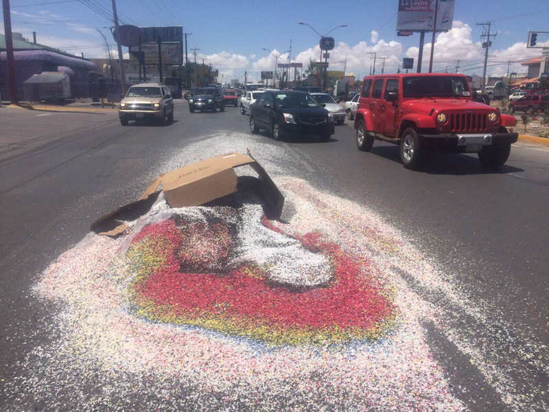 Una caja con plástico triturado cayó de un camión de una empresa recicladora y se derramó sobre el pavimento del Bulevard Zaragoza la tarde este viernes