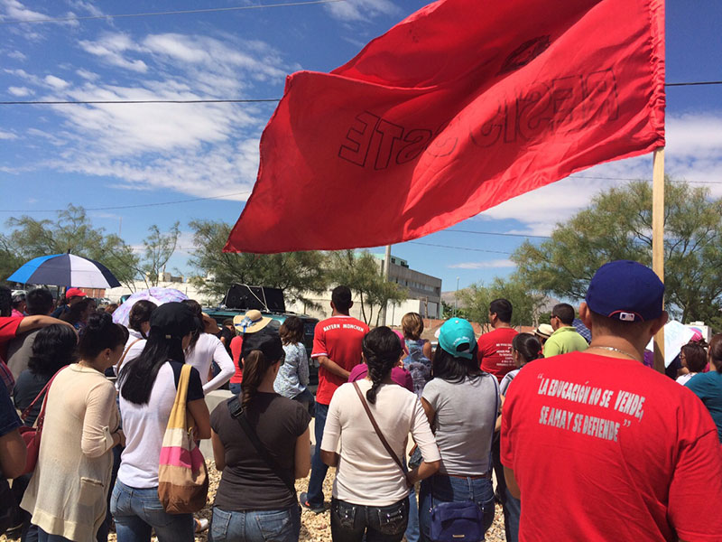 Un grupo de maestros disidentes se manifestaron la mañana de este lunes en la calle Manuel Díaz frente al Centro Universitario de las Artes de la UACJ para protestar contra la evaluación educativa