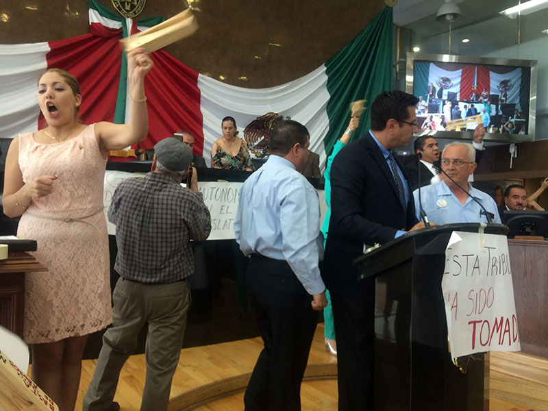 La fracción legistativa del Partido Acción Nacional (PAN) tomó la tribuna del Congreso del estado a din de impedir que se aborde la reforma a la Constitución en materia electoral que impone candados contra candidaturas independientes