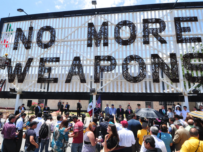 Tras iniciar la remoción del mensaje ‘No More Weapons’ en el puente libre, funcionarios binacionales plantean esfuerzos para nuevo monumento