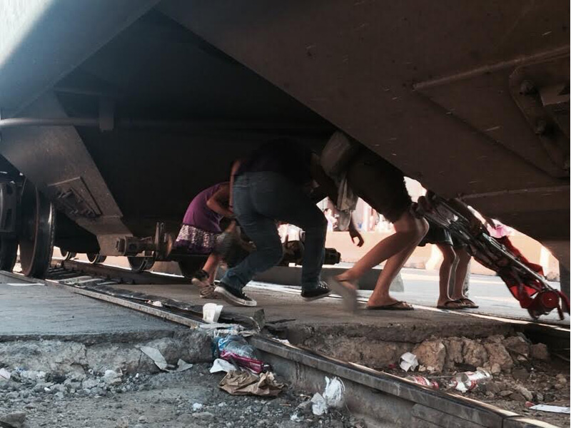 Cientos de fronterizos lidian diariamente con el tren atravesado; algunos, los más aventurados, cruzan las vías hasta con niños en los brazos