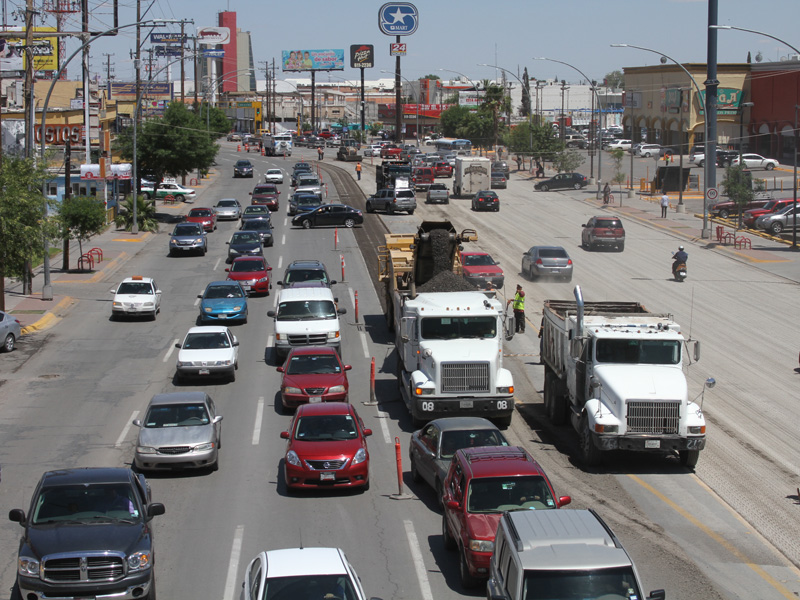 Vehículos tardan hasta 15 minutos par cruzar los semáforos debido a obras de fresado