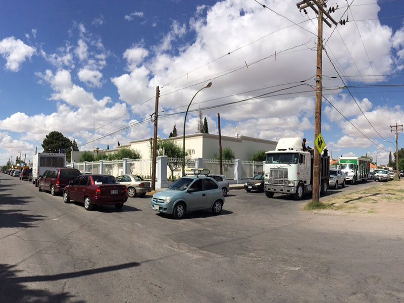 Gran congestionamiento de vehículos se registró esta mañana cuando la dirección de Tránsito cerró el paso de vehículos a la 16 de septiembre, para garantizar la seguridad de los participantes en el desfile del 5 de mayo