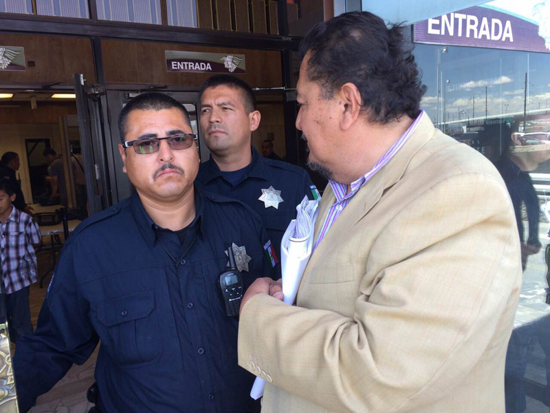 Desde su llegada a la Unidad Administrativa Benito Juárez le fue impedido su ingreso por cuatro elementos de seguridad que regularmente se dedican a revisar superficialmente los bolsos de las mujeres que entran a realizar un tramite en la presidencia