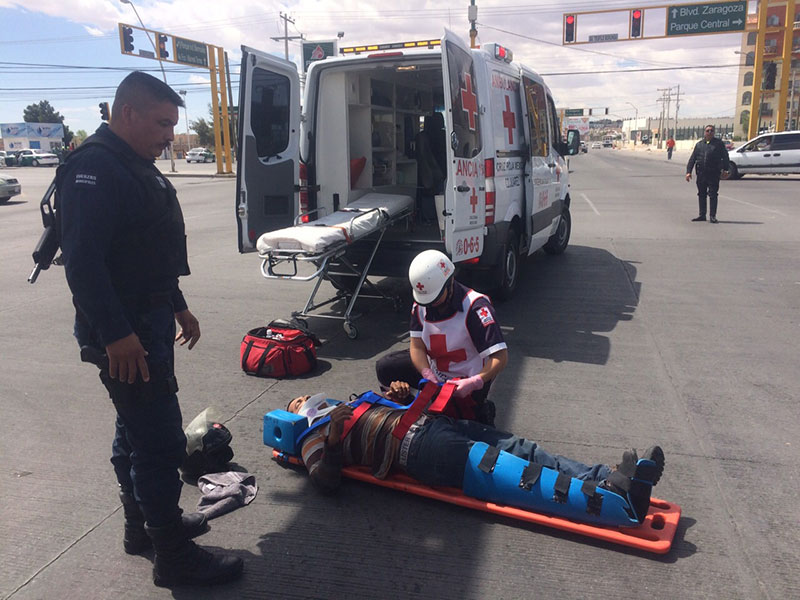 Dos tripulantes de una motocicleta resultaron con heridas graves al ser atropellados por autos en circulación, luego de que ambos cayeran en la moto, en Paseo de la Victoria y Teófilo Borunda.