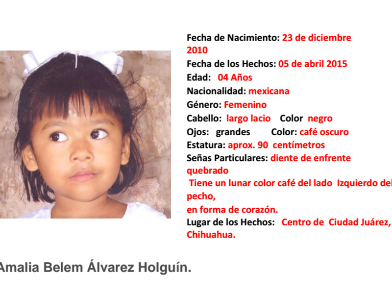 La niña Amalia Belem Álvarez Holguín, por quien se lanzó la Alerta Ambar este día, ya fue localizada y se encuentra con sus familiares