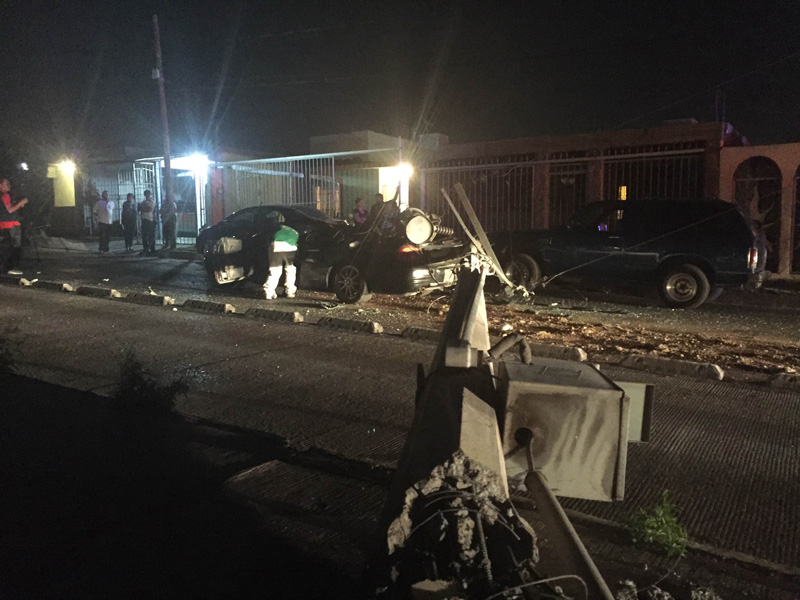 Un chofer de un trailer tumbó un poste de la Comisión Federal de Electricidad y afecto a tres integrantes de una familia que circulaban por el Bulevard Zaragoza, la tarde de este jueves
