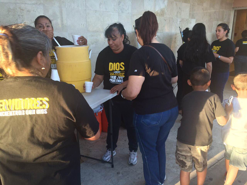 Jóvenes de una congregación cristiana llevaron burritos y bebidas a personas que están esperando a pacientes en el área de urgencias en las clinicas del IMSS