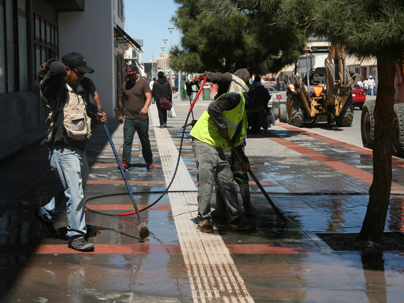 A unos meses de iniciarse la remodelación en la Juárez ya algunos negocios lucen paredes afectadas y anuncios caídos