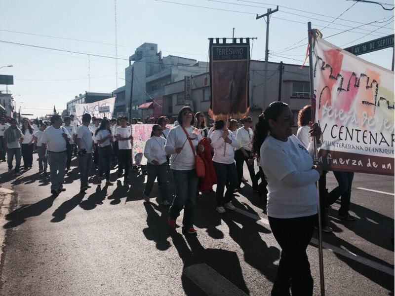 Con playeras alusivas a la fecha, cánticos y frases de la Santa los jóvenes son acompañados por matachines en la caminata que es encabezada por una carreta con imágenes religiosas