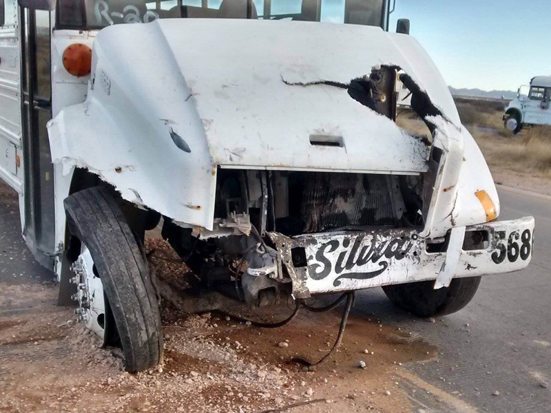 Un camión de transporte de personal fue impactado por otra unidad de transporte público, dejando 18 personas lesionadas