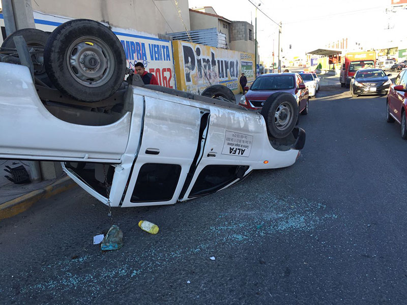 El conductor dijo que derrapó unos 10 metros y al topar con el cordón de la banqueta su vehículo perdió la verticalidad