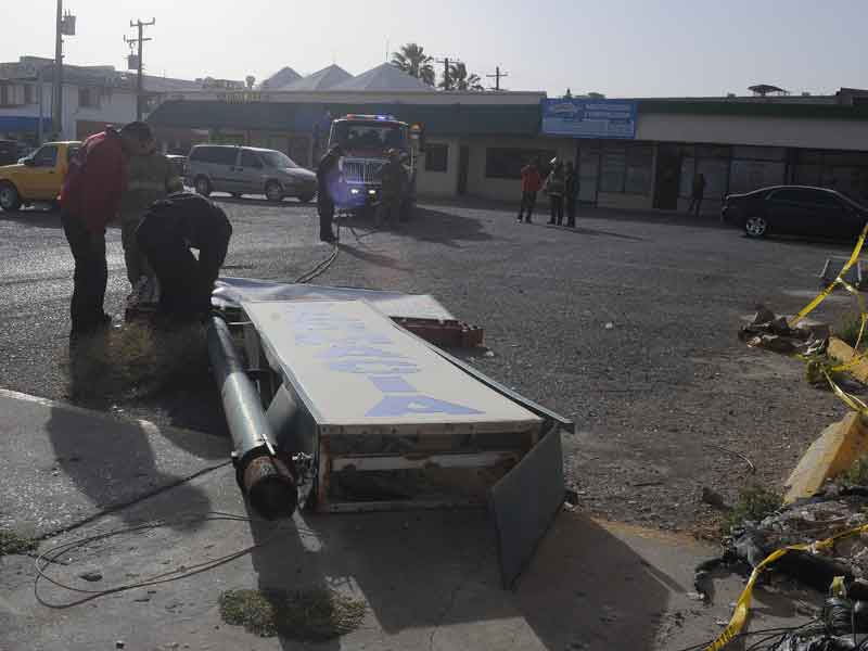 Un anuncio de una farmacia estuvo a punto de caeren una plaza comercial en el cruce de Avenida de las Américas y José de San Martín del Fraccionamiento las Américas