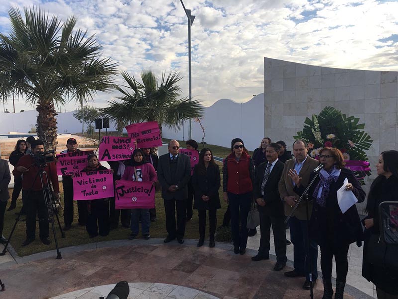 El alcalde de Ciudad Juárez Armando Cabada colocó una ofrenda floral en el Memorial del Campo Algodonero para recordar a las mujeres asesinadas, en el marco de la conmemoración del Día Internacional Contra la Mujer