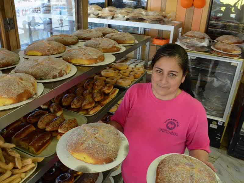 El pan redondo que, se dice, asemeja un cráneo con cuatro huesos; se vende desde hace una semana y se ofrecerá hasta el 3 o 4 de noviembre