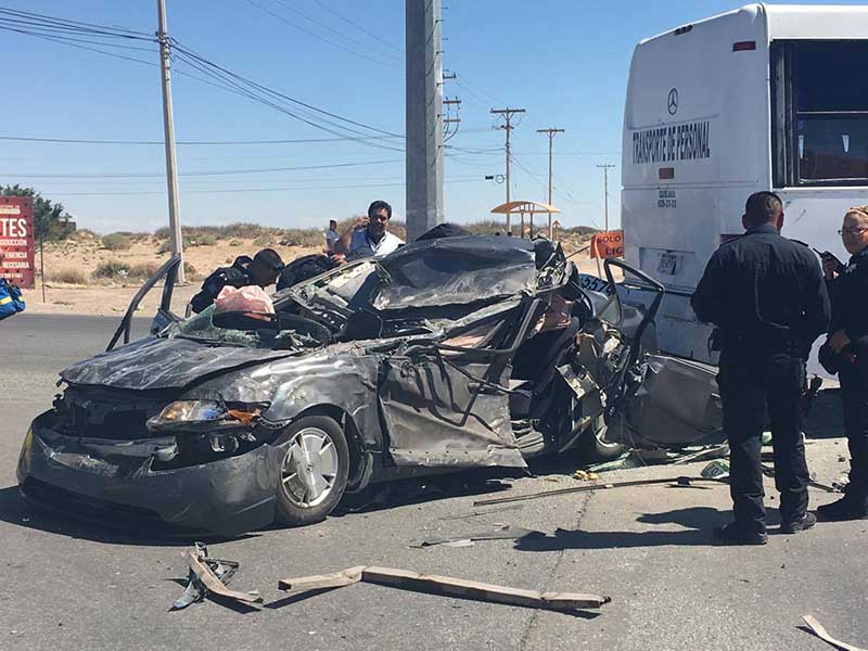 Un muerto y un lesionado dejó como saldo un accidente automovilístico en la avenida Fundadores, en Ciudad Universitaria, durante la tarde de este día en Ciudad Juárez