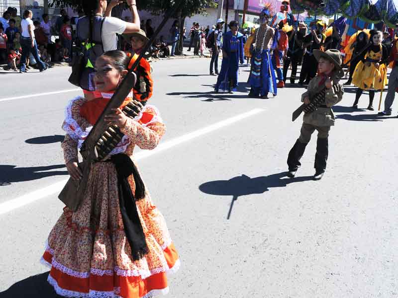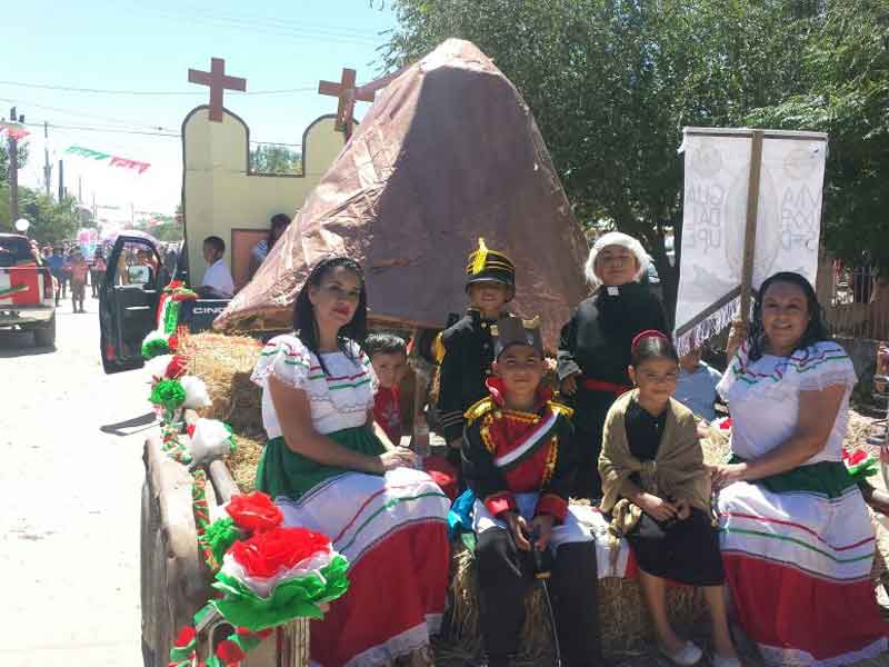 Primarias, secundarias y preparatorias tomaron la avenida Juárez-Porvenir en el poblado de San Isidro para desfilar conmemorando los 206 años de independencia