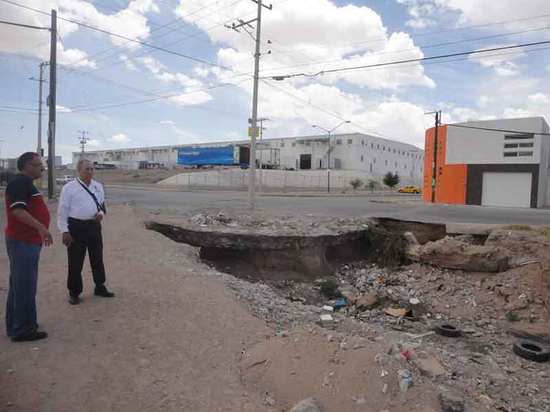 Un tramo de carretera desaparece en el fraccionamiento Paquimé a consecuencia de malos trabajos por parte de las autoridades, denuncian