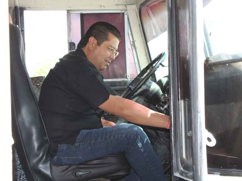 Entrega Cabada camión a estudiantes de Samalayuca…y se toma la foto manejándolo