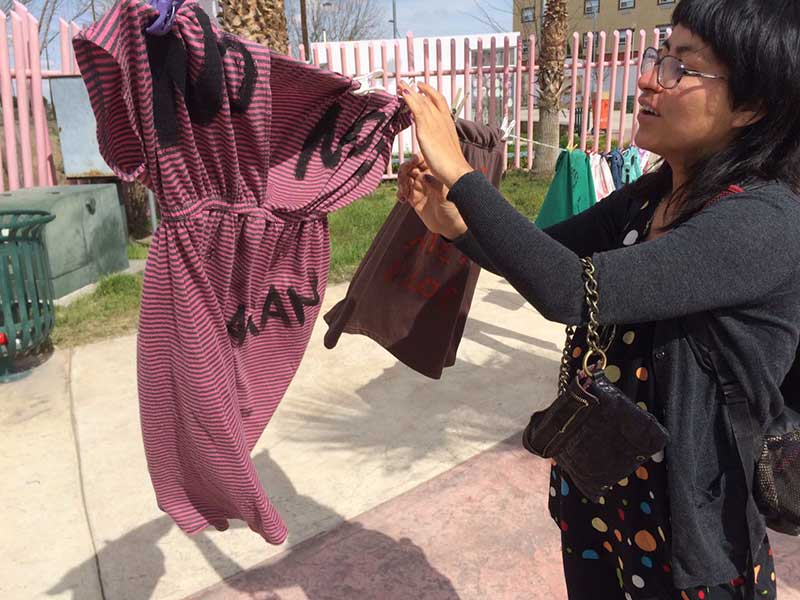 Integrantes del movimiento Mujeres Fronterizas en Resiliencia hicieron acciones de protesta en el Memorial del Campo Algodonero, hasta donde llegaron elementos policiacos
